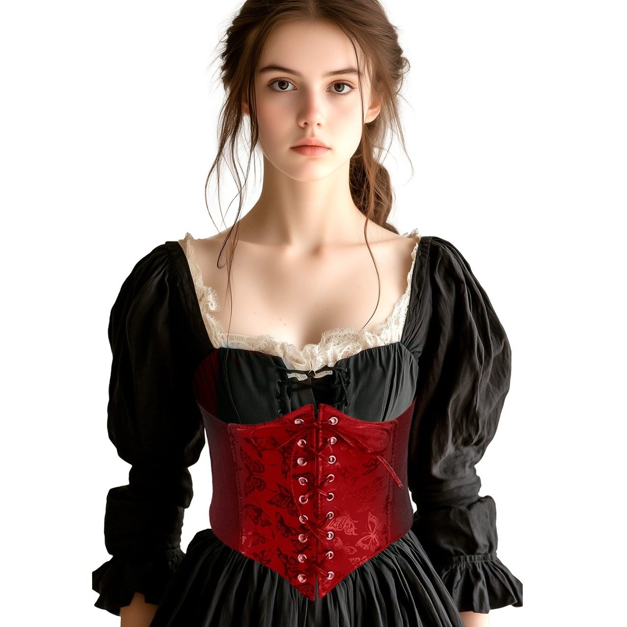 Corset Rojo Mariposas para Halloween y fiestas góticas. Complementos para los disfraces góticos de estilo renacentista o época victoriana. Elige tus complementos góticos y recibe tu pedido en 24 horas.