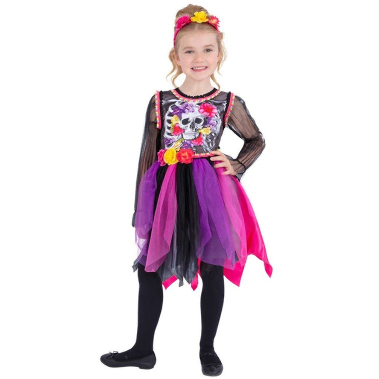 Disfraz de Catrina Radiante para niña para Halloween y fiestas terroríficas. Disfraces de los personajes más terroríficos: catrina, muerte, fantasma, etc... Celebra por todo lo alto el día de los muertos vivientes.