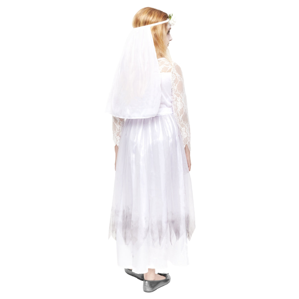 Disfraz de Novia Zombie Sangrienta para niña para fiestas de Halloween y Carnaval. Arrástrate por las fiestas más terroríficas caracterizado como un muerto viviente. Elige disfrazarte de zombie en tus fiestas de Halloween y acertarás seguro. Un buen maquillaje hará el resto para que estés irreconocible.