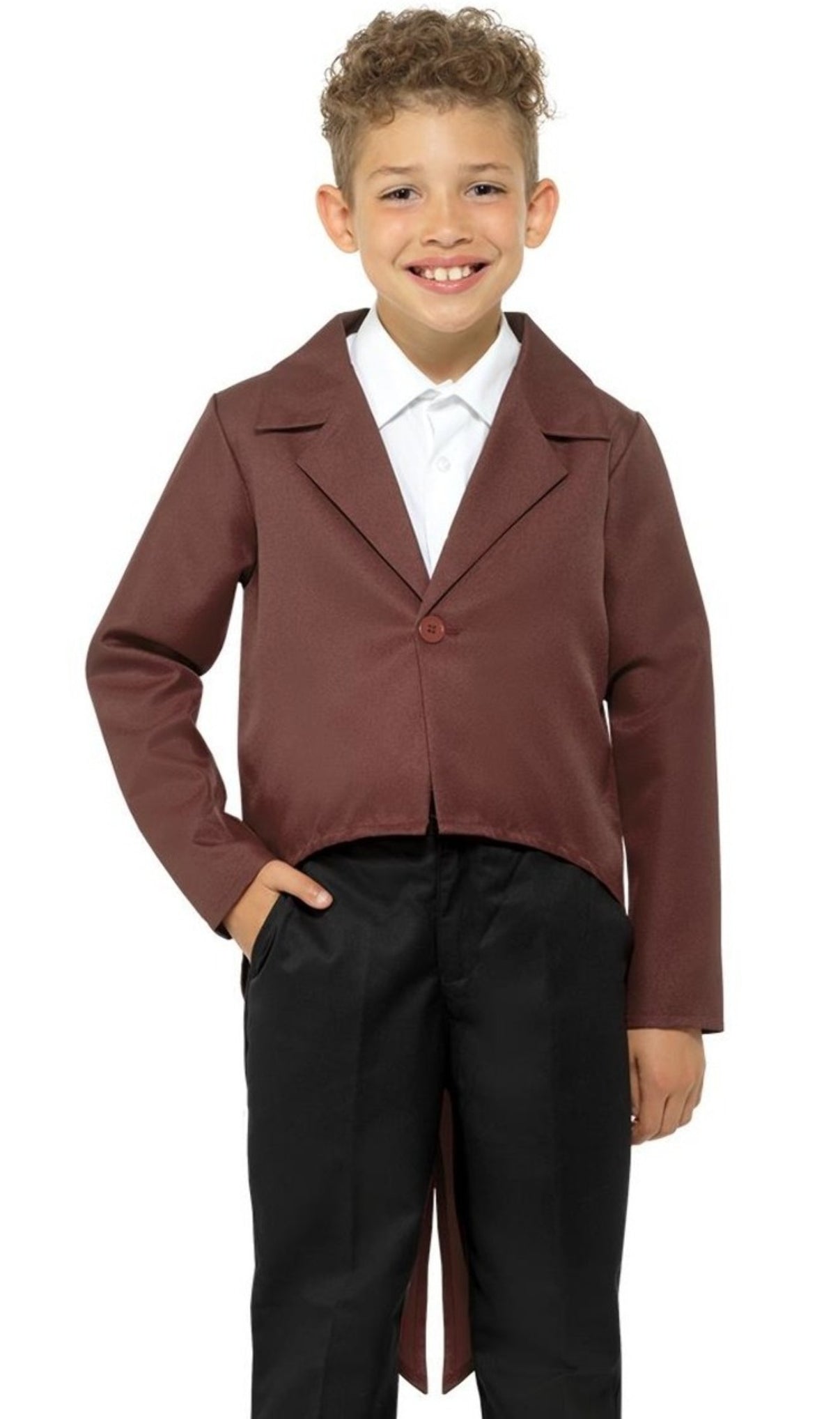 Frac Marrón infantil para tu fiesta disfraces o carnaval. Gran catálogo de accesorios disfraces con lentejuelas, escarcha o brillos plateado y dorado para tener luz propia en la fiesta fin de año o fiesta de disfraces. Elige el ideal para tu ocasión, y pídelo ya.