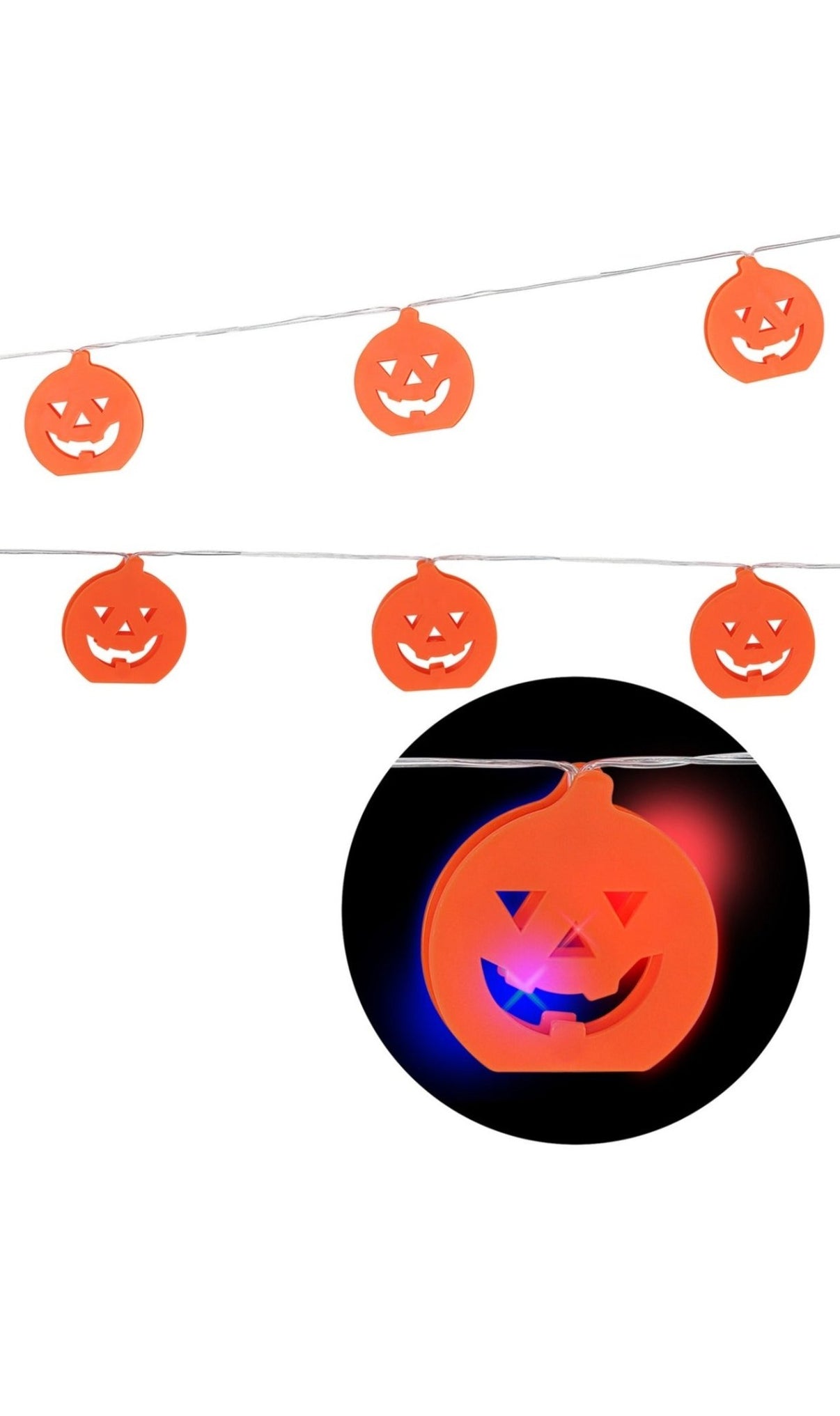 Guirnalda de Calabazas Luminosas para Halloween. Visita toda la colección de complementos disfraces y decoración Halloween para fiestas en la noche de muertos, pasarás una noche de terror entre vivos y muertos. Haz tu pedido ahora y elige platos, vasos, manteles, candelabros, calaveras, calabazas, guirnaldas, telaraña. Y mucho más.