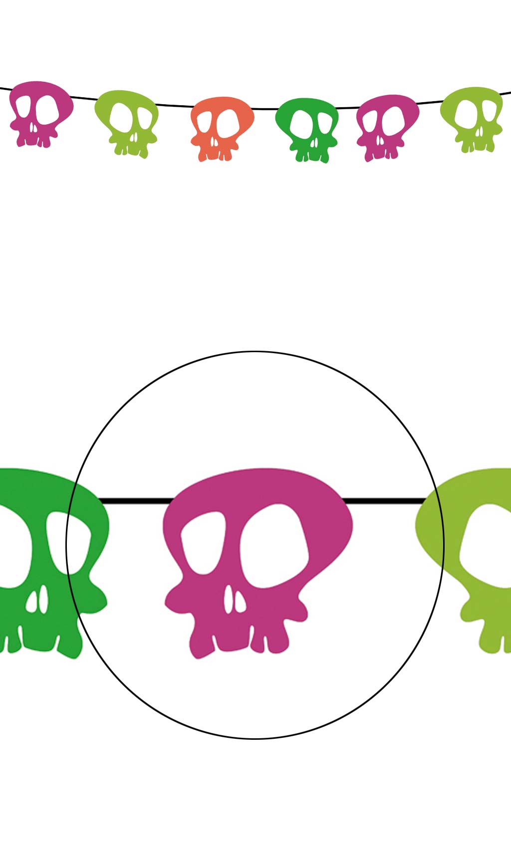 La guirnalda calaveras neón es un adorno de halloween colorido ideal para los festivales infantiles. Las guirnaldas combinadas con colgantes y otros accesorios terroríficos van a crear los mejores ambientes para las noches de terror.