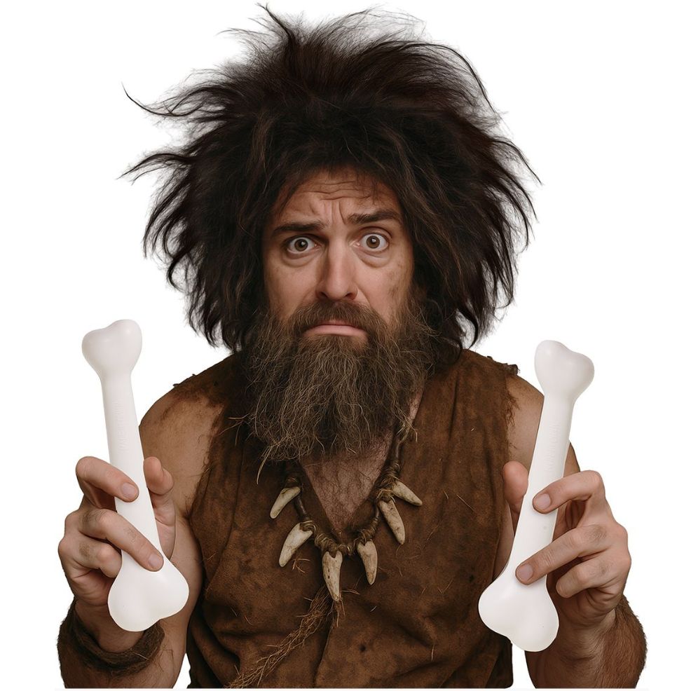 Este Set de 2 Huesos son un complemento ideal para el Disfraz de Cavernicola, Troglodita y hompre Primitivo. Ideal para asistir a fiestas de la Prehistoria y Carnaval.