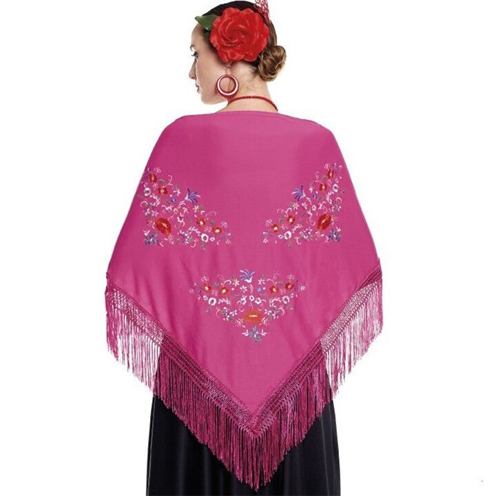 Mantón Fucsia Bordado para carnaval y la Feria de Abril. Compra accesorios para disfraces de sevillana y baila sin parar en tus fiestas flamencas. Descubre nuestro catálogo de accesorios con los que completar tu disfraz y convertirte en una verdadera flamenca.