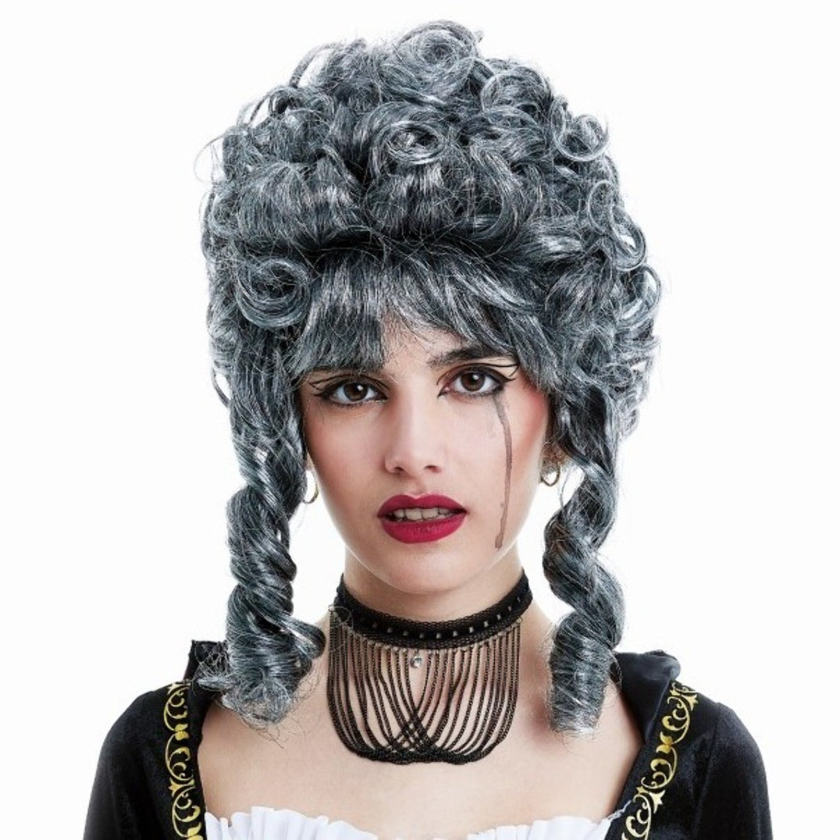 Peluca Barroca Gris para Carnaval, fiestas de época y fiestas venecianas. Complementos para hacer un viaje en el tiempo. Disfruta en la fiestas disfraces con tus amigos y forma parte de la historia. Los mejores precios con envío 24 horas.