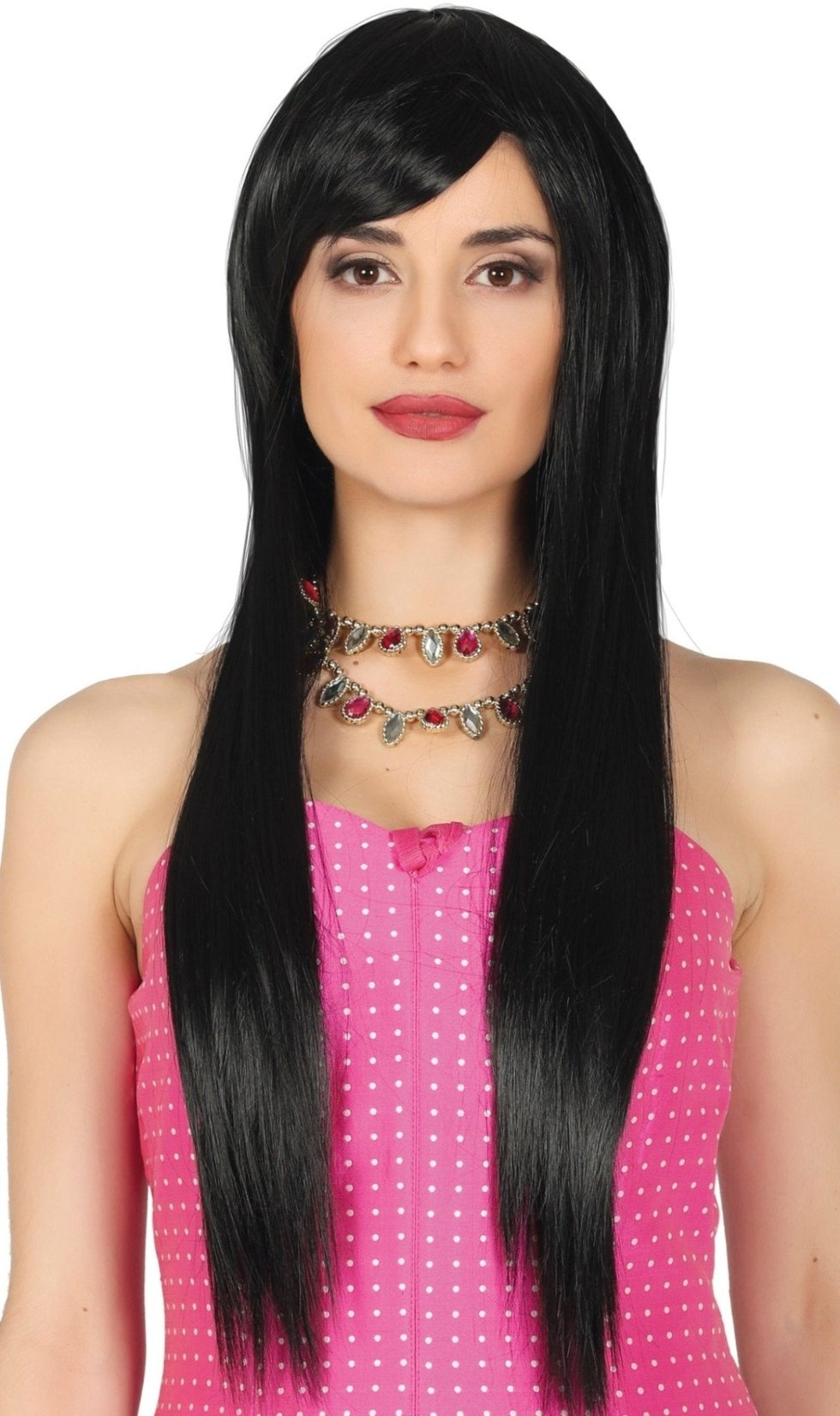 Peluca de Melena Larga Negra de disfraces carnaval. Con los complementos de disfraz personaliza tu disfraz original para ir a la fiesta disfraces. Descubre nuestro catálogo novedades y haz tu pedido ahora.