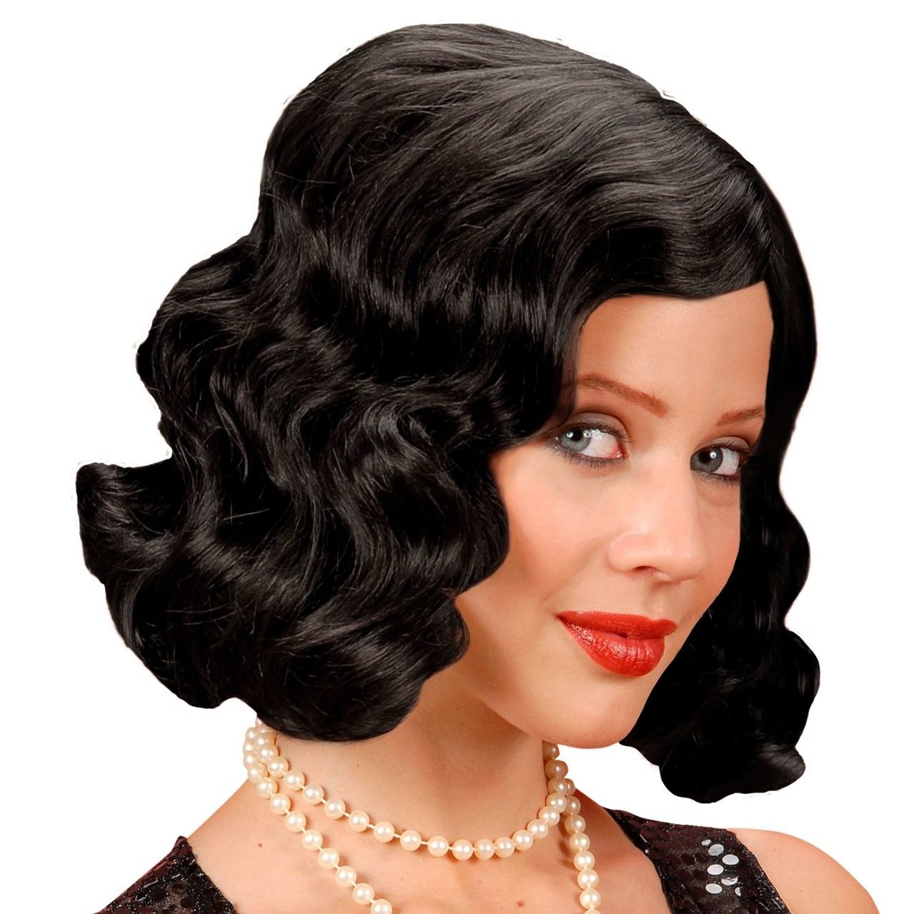 Peluca Negra Ondas Años 20 para Carnaval, fiestas de época y fiestas venecianas. Complementos para hacer un viaje en el tiempo. Disfruta en la fiestas disfraces con tus amigos y forma parte de la historia. Los mejores precios con envío 24 horas.