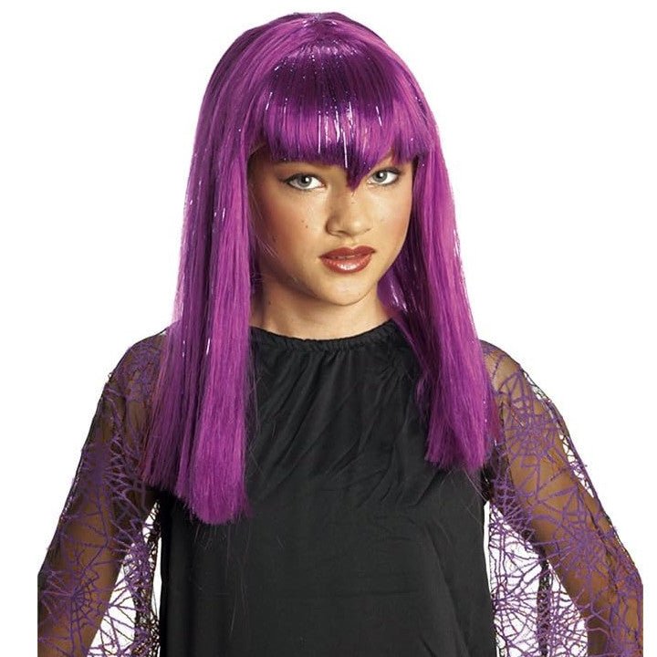 Peluca Vampiresa Traviesa Violeta infantil para Halloween y Carnaval. Viaja a Transilvania y visita el castillo de Drácula, donde vivirás eternamente entre ataúdes y ultratumbas. Para tus fiestas de Halloween compra los accesorios más originales y siniestros en nuestra tienda online.