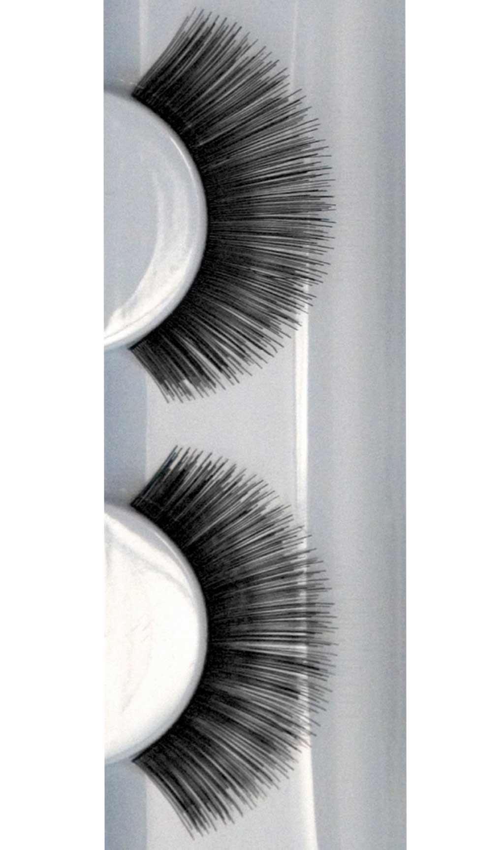 Atención: Trabaje siempre en una base seca, tome la pestaña con cuidado, con el borde adhesivo con el cual está fijada en la caja, usted pega la Pestaña al borde superior de las pestañas con unas pinzas o los dedos. Trabaje desde el interior hacia el exterior, empezando a poca distancia del lagrimal del ojo.Reutilización :