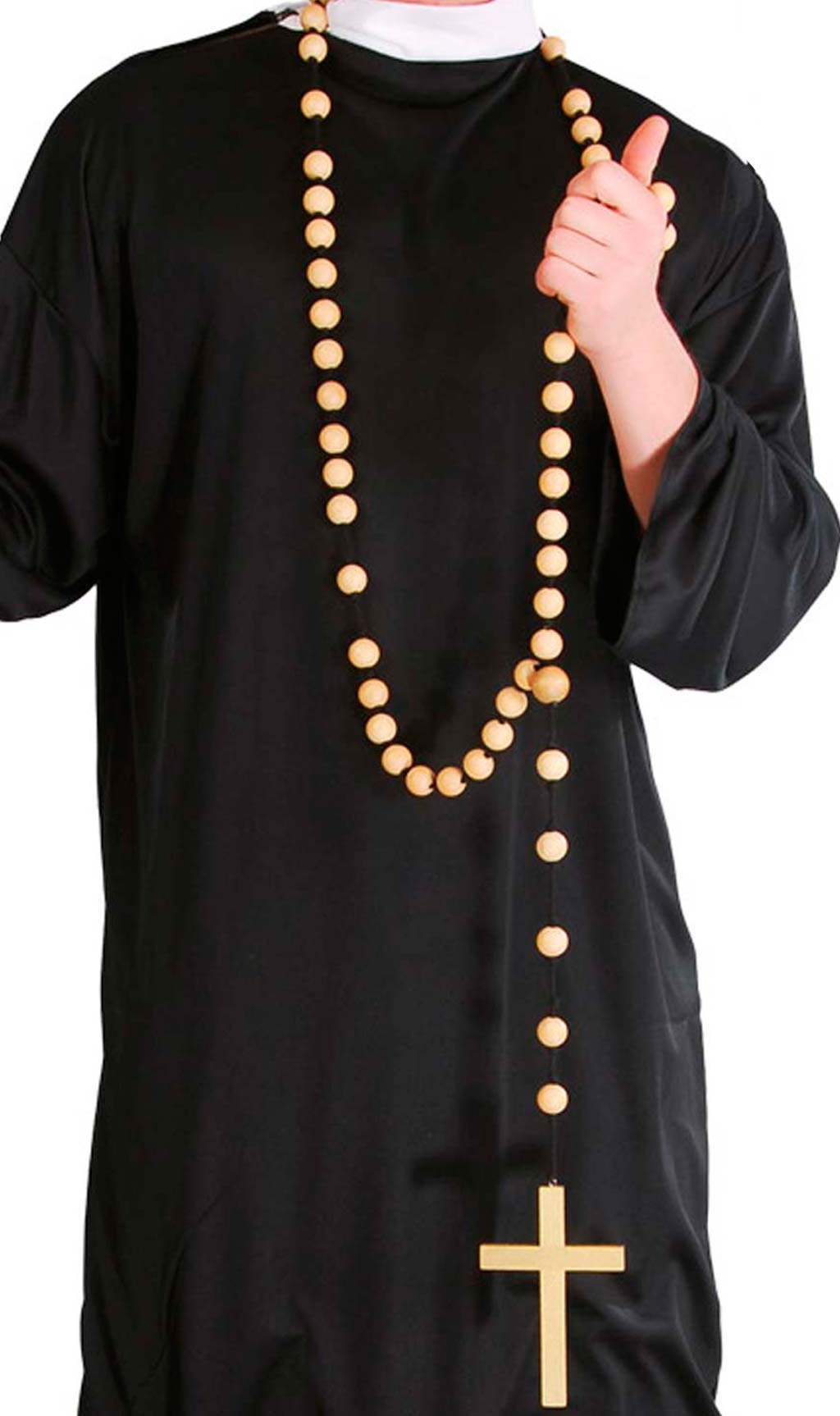 Este Rosario Gigante con sus cuentas y su cruz, como un rosario auténtico. Es perfecto para darle un toque divertido a los Disfraces más religiosos y recatados como el Disfraz de Cura, Monja, Fraile, Papa, Cardenal, Monje, Obispo, etc., o también para ponerle un toque ácido a Disfraces maquiavélicos como de Demonio, Diablesa o Exorcista.